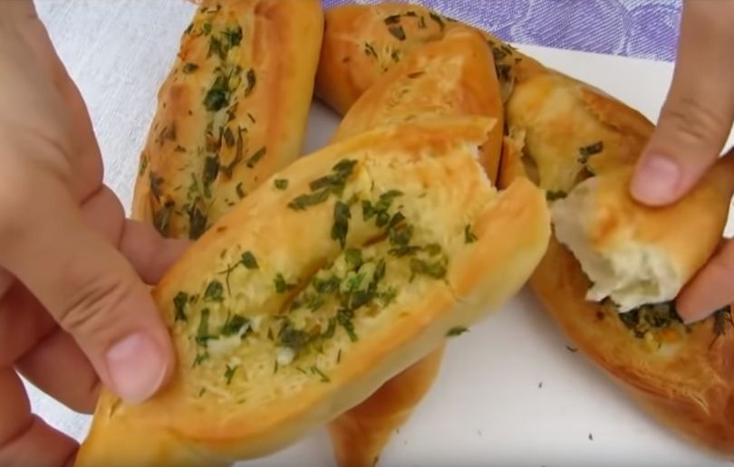 Готовим начинку. В растопленное сливочное масло добавь порезанную зелень петрушки и измельченный чеснок. Каждую заготовку надрежь вдоль по всей длине. В образовавшийся кармашек отправь начинку, а тесто смажь яичным желтком. Выпекай при температуре 180-200 градусов около 20 минут.