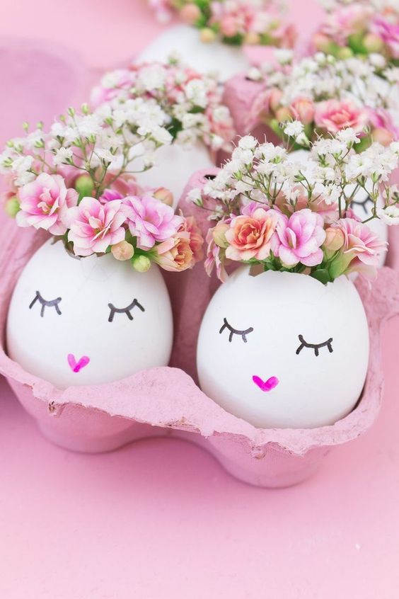 Для приготовления пасхальных блюд уходит много яиц помимо тех, которые будут сварены и покрашены целыми. Ты можешь использовать скорлупу от яиц для создания мини-букетов на столе. Раскалывай яйца в верхней их части, сполосни и дай высохнуть пустой скорлупе. Покрась в подходящий цвет бумажный яичный поддон - вот у тебя готов настоящий цветочный бордюр, который не придется хранить весь год.