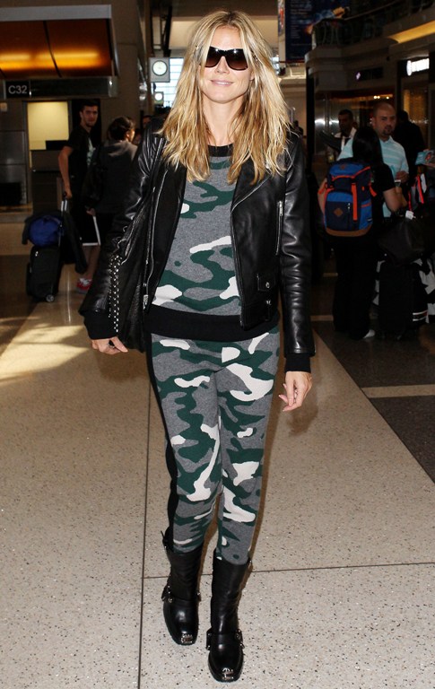 Вещь в стиле милитари – еще одна необходимая деталь гардероба. На фото – Хайди Клум в аэропорте Лос-Анжелеса.