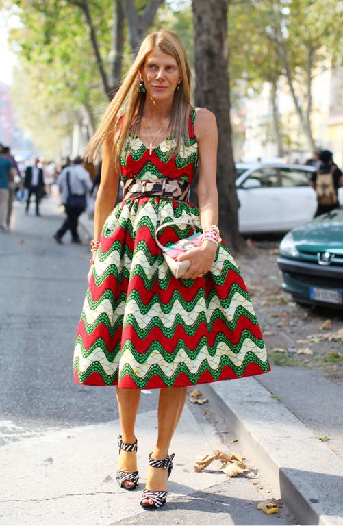 Платье с невероятным принтом – хит этого сезона, особенно если речь идет о вечеринке. На фото креативный директор японского журнала Vogue Анна Делло Руссо.