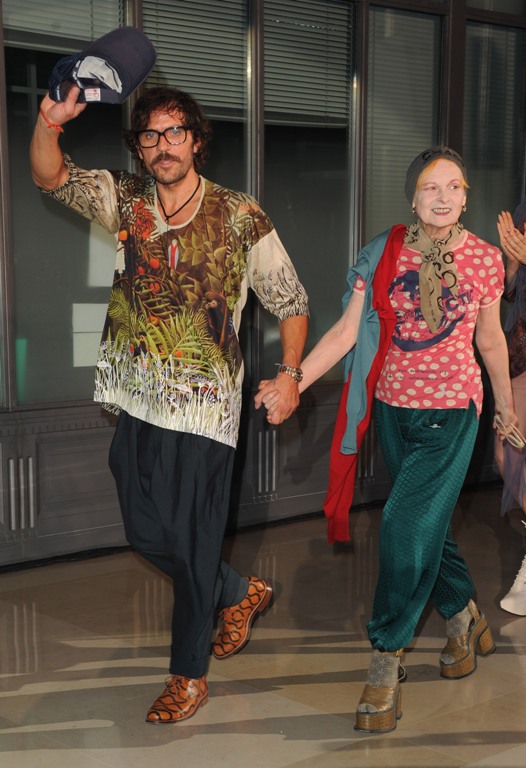 Дизайнер Вивьен Вествуд на собственном показе вместе со своим супругом Андреасом Кронхелером.