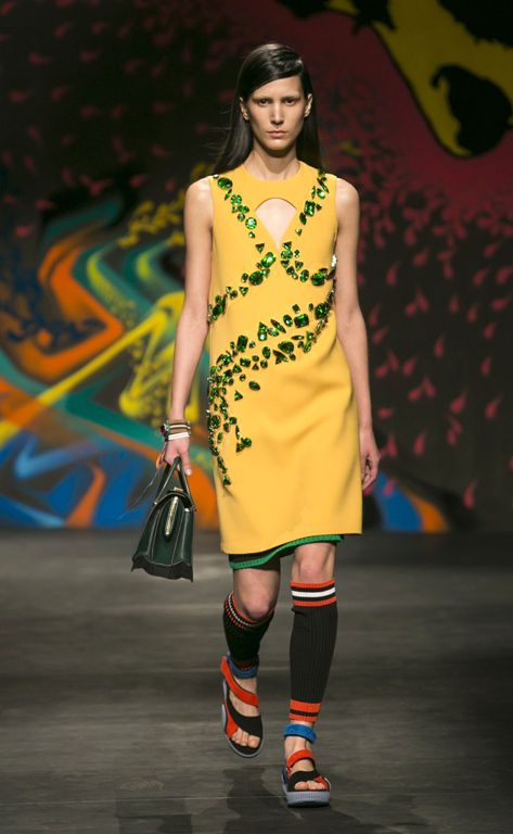 Если сравнивать коллекцию Prada 2014, то оказывается, что дизайнер отошла от мейнстрима, выбранного другими дизайнерами, которые продемонстрировали на неделях моды в Лондоне, Париже и Нью-Йорке минимализм 1990-х и 1960-х. По мнению Prada, мода 2014 – это показная декоративность, сочетание несочетаемого, это настоящее модное откровение.