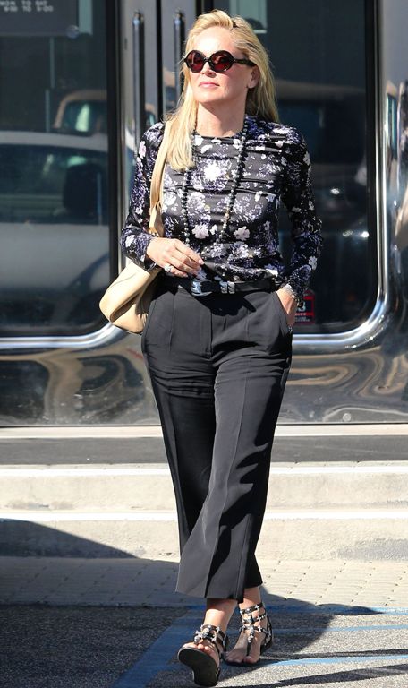 У Шэрон вполне можно поучиться премудростям, как выглядеть молодо благодаря одежде. В этот раз актриса вышла на прогулку по Беверли Хиллз в стильном наряде – укороченных черных брюках и черно-белой блузе.