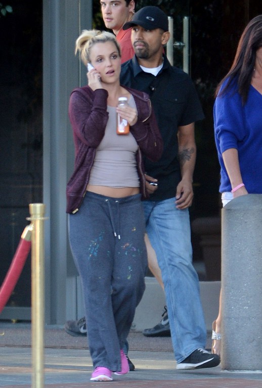 Получилась досадная оплошность: пока звезда разговаривала по телефону, спортивные брюки сползли немного ниже талии, оголив полненький животик. Так обычная прогулка Бритни Спирс превратилась буквально в модную катастрофу.