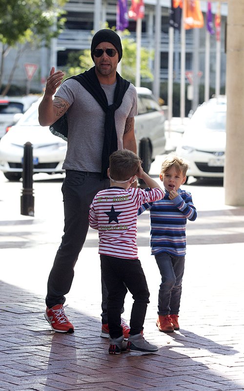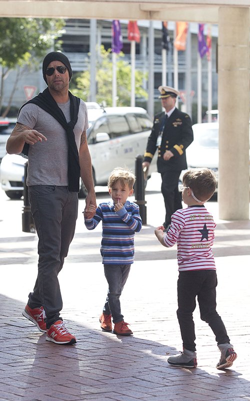 Звездного папу и его двоих детей, 5-летних близнецов Валентино и Маттео сфотографировали на прогулке в Австралии.