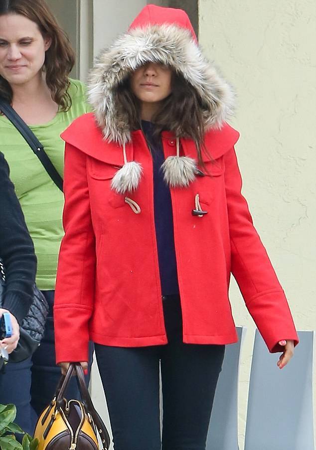 Красавица Мила Кунис порадовала нас ярким осенним образом: стильным красным пальтишком с меховой окантовкой и милыми бумбончиками.