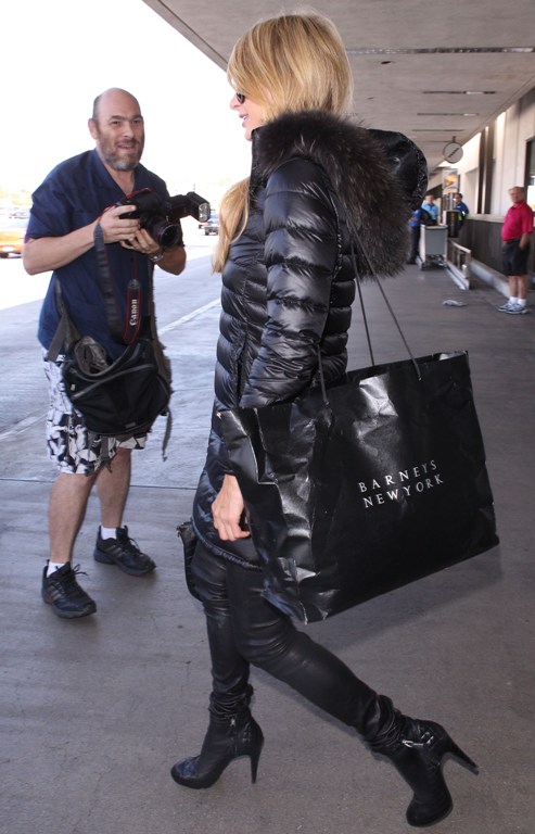 Однако в это раз девушка изменила себе и вышла в свет в самом обычном черном пуховике. Правда, дополнила знаменитость свой образ кожаными штанами и сапогами на высоком каблуке. В таком виде знаменитость запечатлели в аэропорте Лос-Анжелеса.