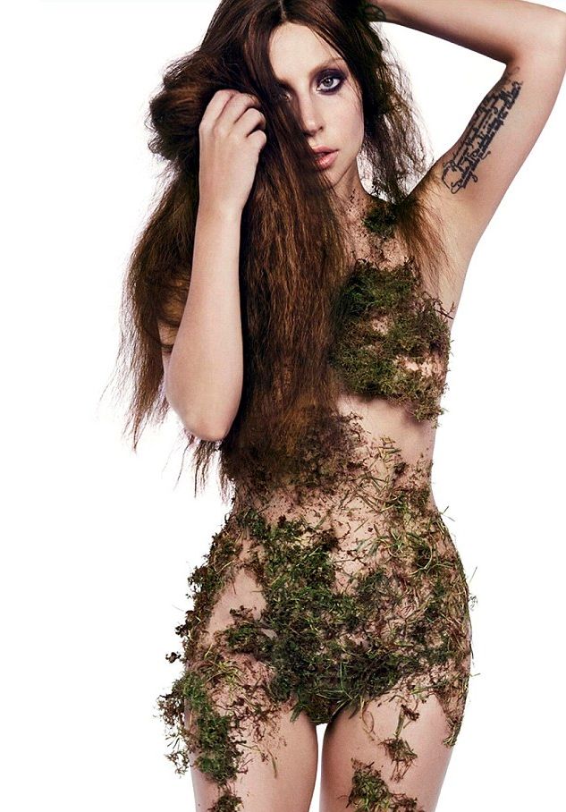 Обнаженная Леди Гага прикрылась... травой (фото)