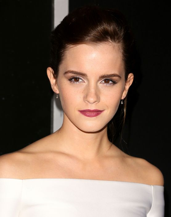 Эмма Уотсон предпочла для осеннего выхода в свет макияж в фиолетовых тонах для глаз и матовую помаду винного оттенка.