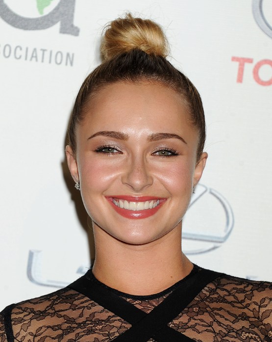 Будущая невеста Хайден Панеттьери отдала предпочтение неброскому макияжу: помада морковного оттенка, тонкие стрелки и светлые перламутровые тени.