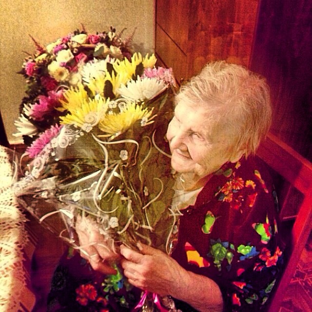 Подпись под снимком гласила следующее: "Бабушка Валерии @valeriya_rus принимает поздравления.100 лет ,надеюсь,не предел.Трое детей,трое внуков и шесть правнуков и все соберутся завтра в большой компанией.Какая же она счастливая.Вывод: берегите родных и близкий.Больше позитива."