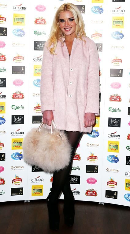 Меховая сумочка в этом сезоне – стильное дополнение к вечернему образу, например, к маленькому черному платью. Пример подает актриса Натали Келли.