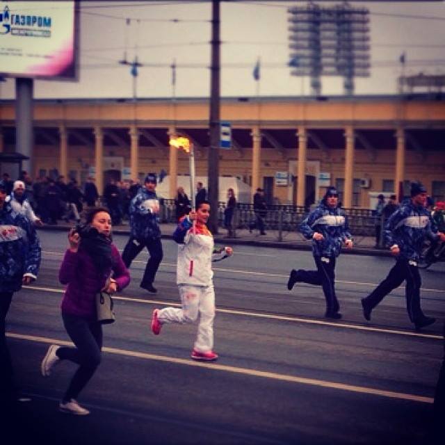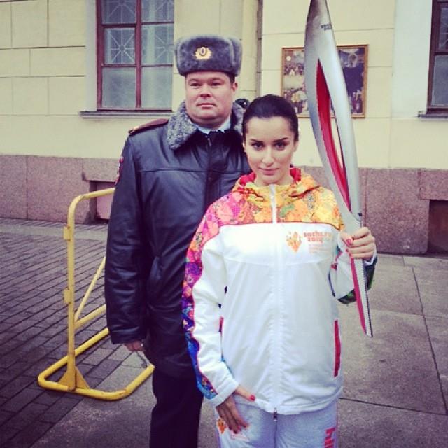 Попутно Тина успевала не только нести олимпийский огонь, но и фотографироваться с полицейскими. Фото с симпатичным служителем закона Тина подписала так: