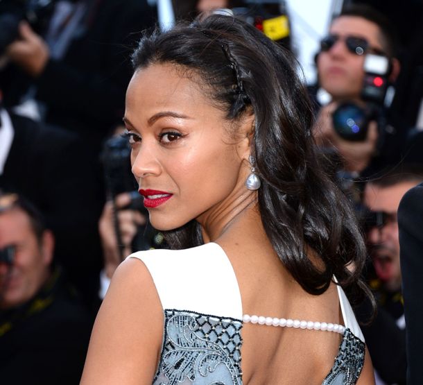 Зои Салдана продемонстрировала красивую жемчужную деталь – шлейку на платье.