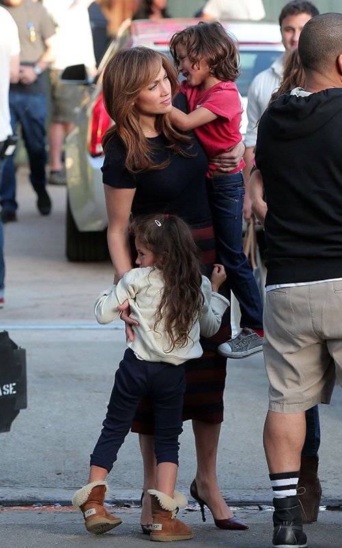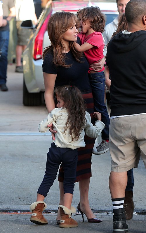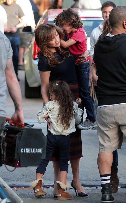 Малыши приехали на съемочную площадку новой кинокартины "The Boy Next Store", чтобы навестить свою маму, которая исполняет в новом фильме главную роль.
