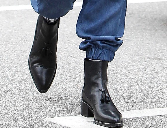 В этот раз для прогулки певица выбрала элегантный джинсовый комбинезон и длинное черное пальто с красивым шелковым воротником.