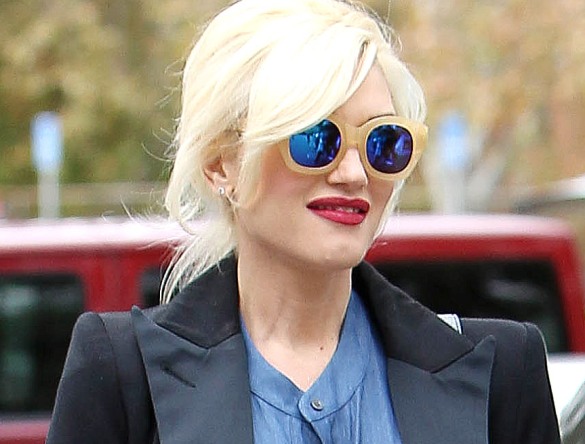 А потрясающие зеркальные голубые очки в бежевой оправе сделали образ будущей мамочки Гвен Стефани практически идеальным.