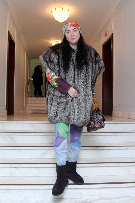 И все бы хорошо, если бы не странное сочетание рисунков на леггенцах и джемпере, на сумочке и шапке. Особенно некрасиво выглядело сочетание этого ансамбля с длинношерстной шубкой из черного песца. В общем, образ оказался провальным. Согласны?