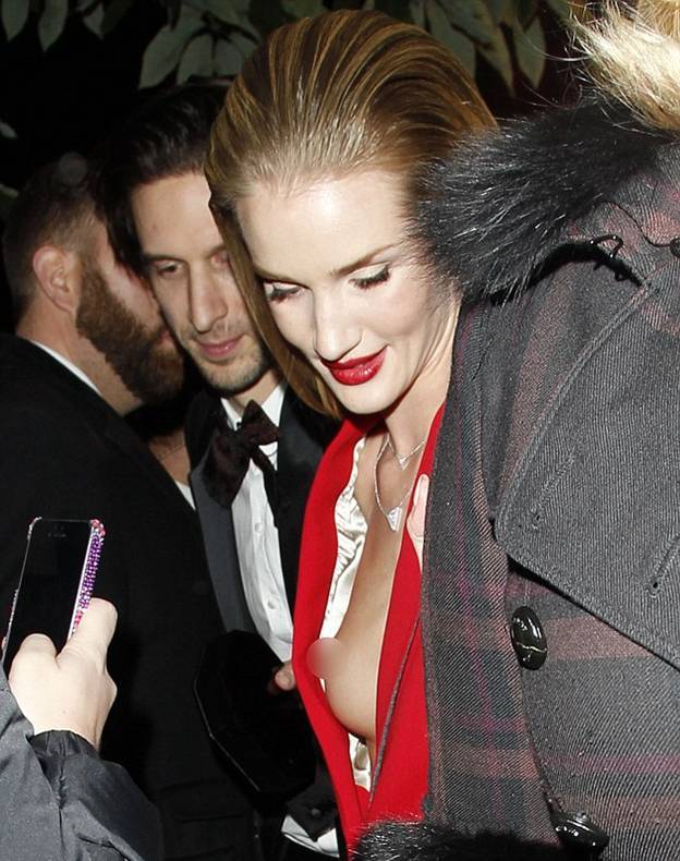 Откровенный наряд приоткрыл прелести Рози, в итоге девушка ненамеренно продемонстрировала всем свою грудь. Наконец нашлась поклонница, которая указала Рози на конфуз, и та быстро поправила лацкан пиджака.