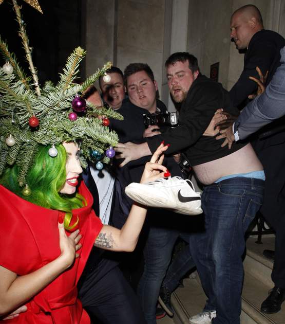 Звездный конфуз: Леди Гага стала елкой и разула фотографа (фото)