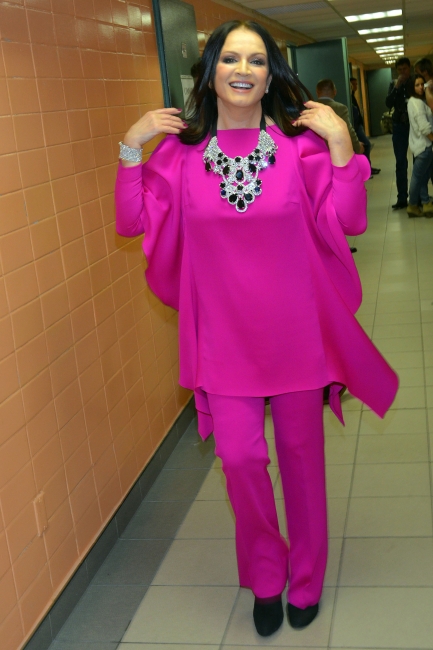 66-летняя София Ротару поразила своим изысканным и смелым образом, а также ярким цветом костюма. Особо стоит отметить фасон верхней части наряда: это объемная блуза с ассиметричным низом. Свой образ знаменитость дополнила роскошным колье с черными каменьями.