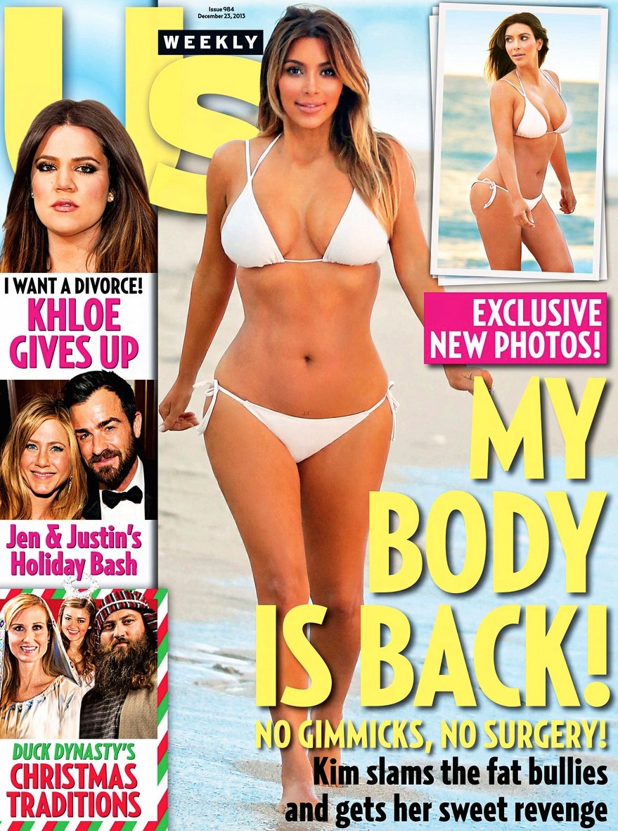 Снимки Ким Кардашян в бикини украсили обложке свежего выпуска журнала US Weekly. Оторвать взгляд от фотографии сложно, ведь молодая мамочка вернула себе былые роскошные формы.