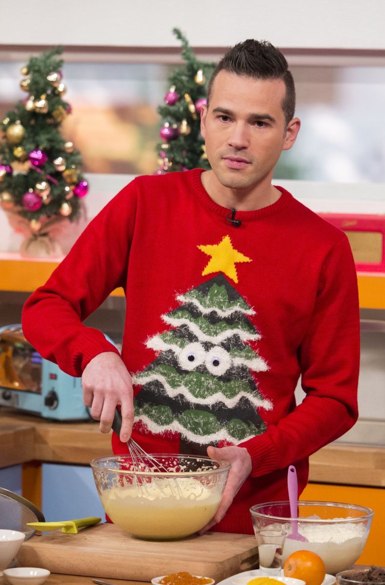 Дин Эдвардс для участия в передаче яркий красный витер с оригинальной елочкой. Фото rexfeatures.com