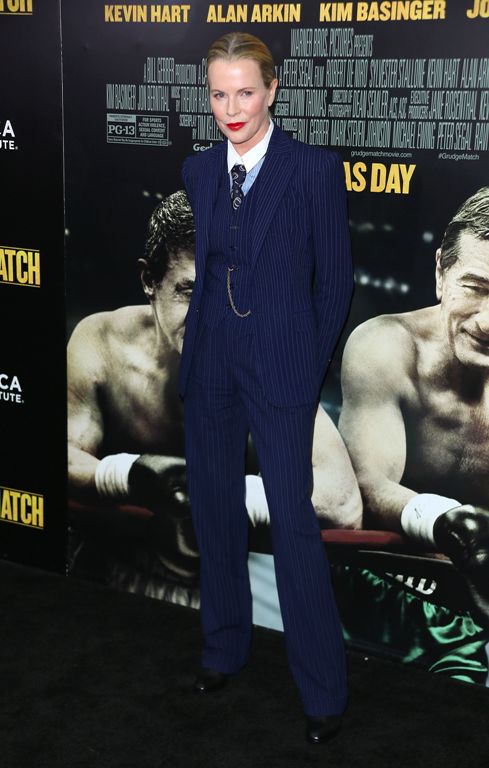 На премьере фильма «Grudge Match» 60-летняя Ким Бейсингер выглядела в гангстерском костюме просто великолепно. Вместе с Ким на премьерной дорожке были Сильвестр Сталлоне и Роберт Де Ниро.