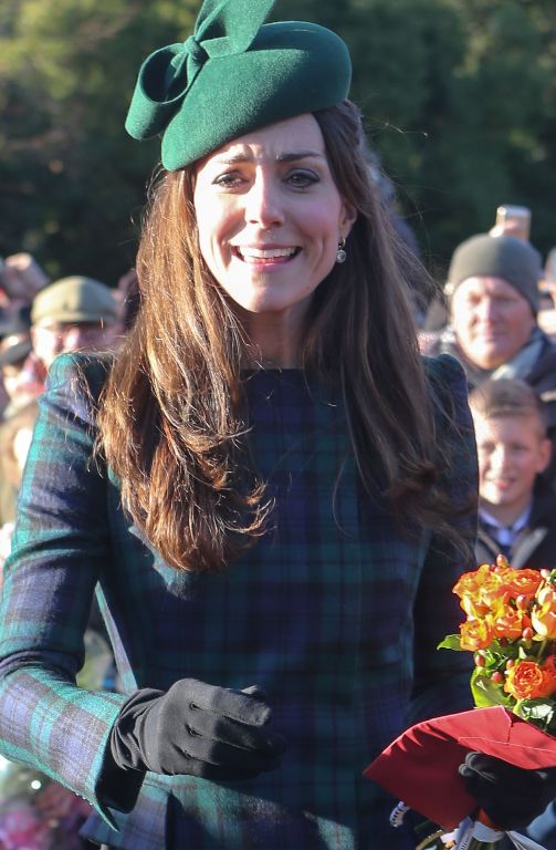 Правда, все ждали появления маленького принца Георга, но он пока что не почтил присутствием своих подданных. После службы члены королевской семьи раздавали подарки детям. На мероприятии Кейт красовалась в скромном зеленом пальто в клетку и элегантной шляпке в тон.