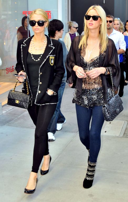 Сестры Пэрис и Ники Хилтон подают пример, как при помощи длинного колье сделать повседневный образ праздничным. Пэрис использовала бусы, а Ники – цепочку с кулоном.
