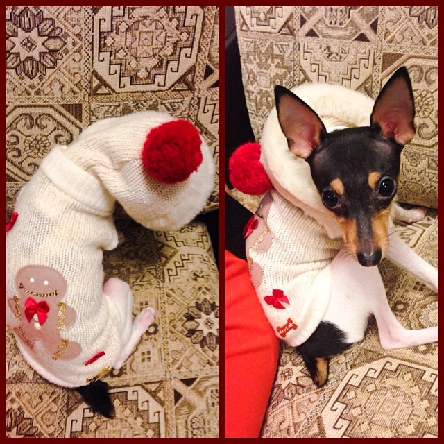 Знаменитость также рассказала, что к Новому году нарядила своего домашнего любимца в маскарадный костюм. «Патрик на Новый год был пряничком ))», – подписала Кристина Асмус снимок.