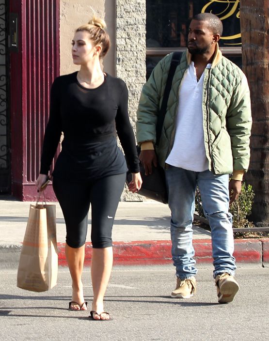 Ким Кардашян появилась на улице в тренировочных лосинах, которые повторяли все рельефы тела и не скрывали анатомических подробностей фигуры звезды. Мало того, девушка решила не слишком заморачиваться с обувью и обула самые обычные пляжные тапки. А из волос Ким скрутила на голове тугой узел, и прическа выглядела совершенно по-домашнему.