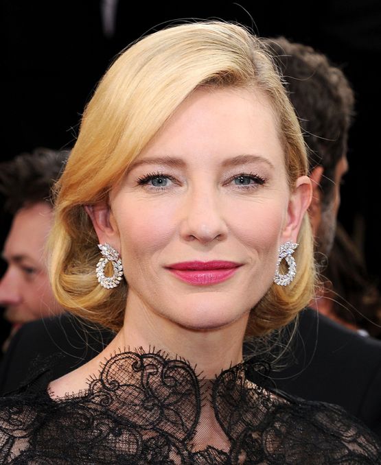 Актриса Кейт Бланшетт отличилась элегантной прической, уложив волосы на правую сторону и немного подкрутив концы внутрь.