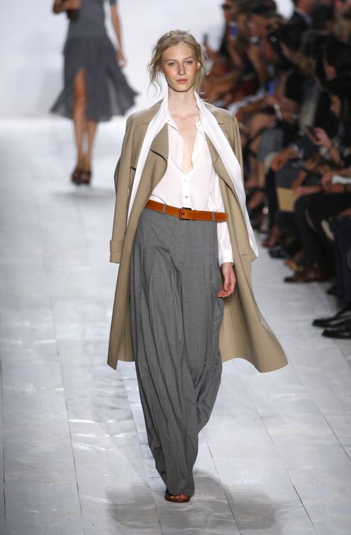 Michael Kors предлагает весенние плащи светлых тонов. При этом носить плащ надо на плечах, как бы небрежно накинув в спешке.