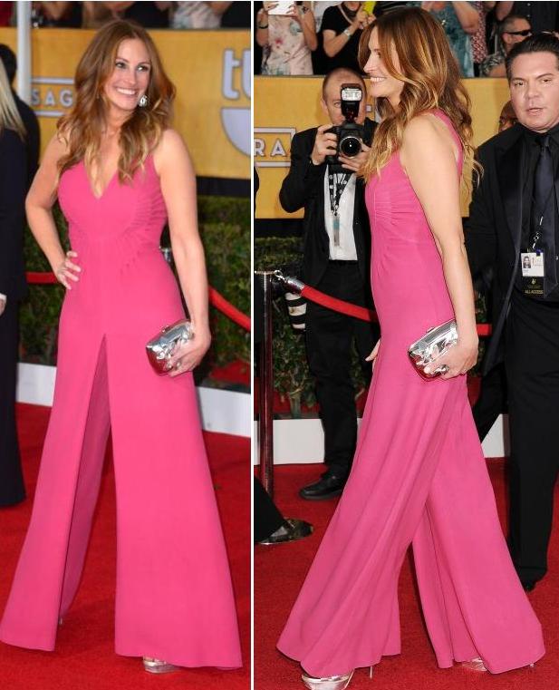 На 20-й церемонии Screen Actors Guild Awards, которая состоялась на днях в Лос-Анжелесе, 46-летняя Джулия Робертс была в розовом комбинезоне-платье от Valentino. Особое внимание прессы и фотографов привлек животик звезды, ведь, по слухам, Джулия пребывает в счастливом ожидании четвертого ребенка. Правда, сама актриса недавно во время нескольких телешоу разочаровала своих поклонников, признавшись, что не беременна.