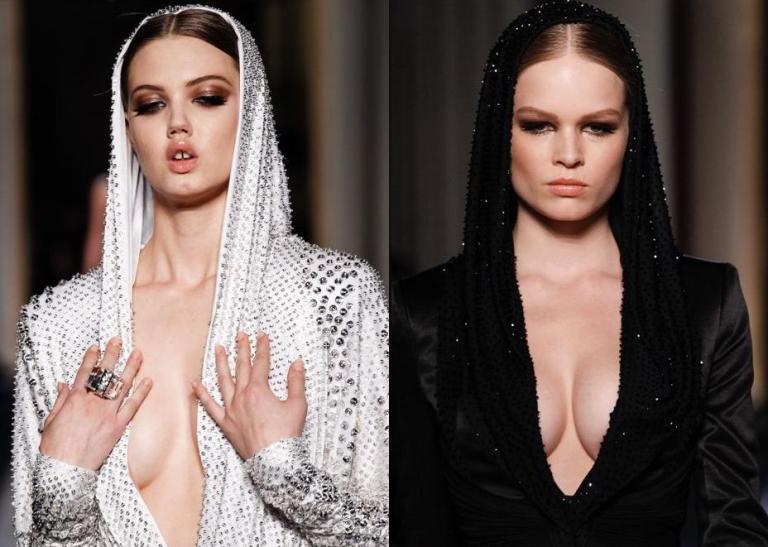 Роскошные разрезы и стразы. Платья и костюмы с капюшонами – шелковыми и кольчужными.