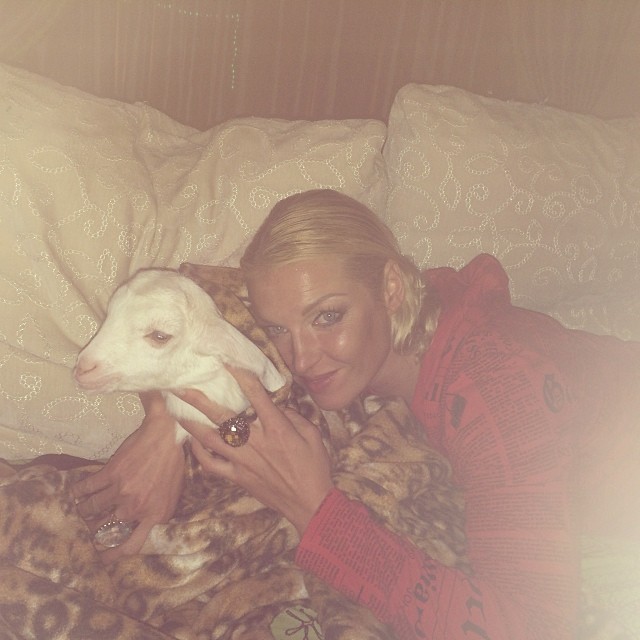 А кое-кто даже подарил балерине необычное животное – не кота, и не собаку, а белого козлика. Оригинальный подарок балерине сделал эксцентричный шоу-мен Бари Алибасов. Снимок Настя подписала коротко: