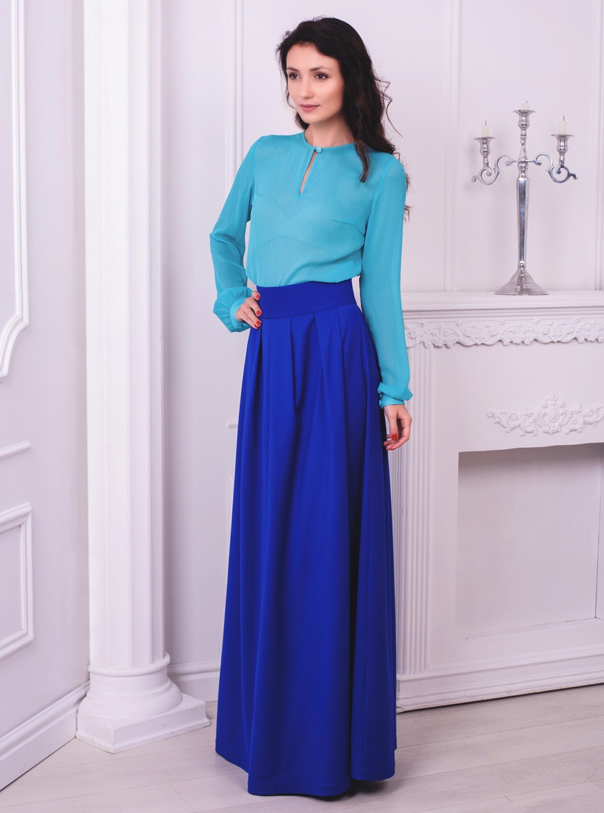 Не забываем также о голубом цвете. Он очень освежает и придает вашему образу легкость и воздущность – смело этим пользуйтесь. Этот цвет подойдет и для романтичных прогулок, и для дружеской встречи, и даже для офиса. Голубой цвет отлично сочетается с темно-синим, желтым, красным, серым, оранжевым. А вот сочетая его с розовым и зеленым, нужно очень осторожно выбирать их оттенки.