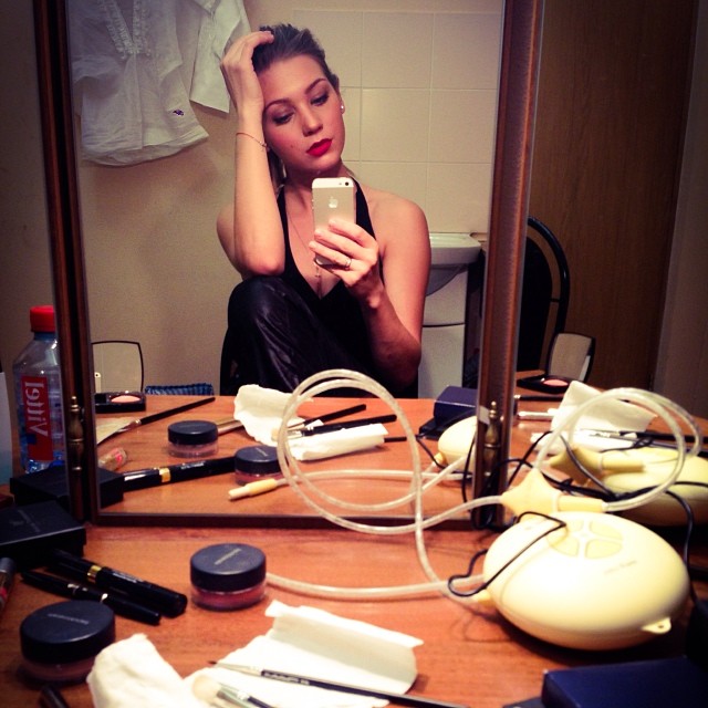 Перед одним из спектаклей Кристина решила запечатлеть свой яркий макияж и сама себя сфотографировала в зеркале. Снимок актриса подписала просто: «доспектакльофелиялук )».