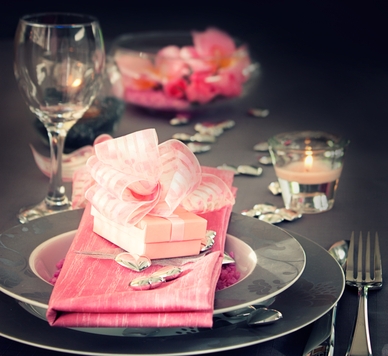 2. Дополнить сервировку стола на День святого Валентина можно яркими лентами – розовыми или красными, перевязав ими столовые приборы.