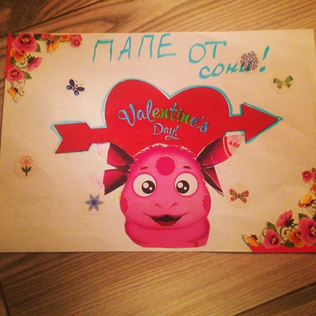 Зато на днях муж Ани Мурат поделился с поклонниками снимком замечательного подарка, который ему преподнесла Соня на День Валентина 2014. Девочка, вероятно, не без участия Каролины, подготовила для папы очень милый рисунок.