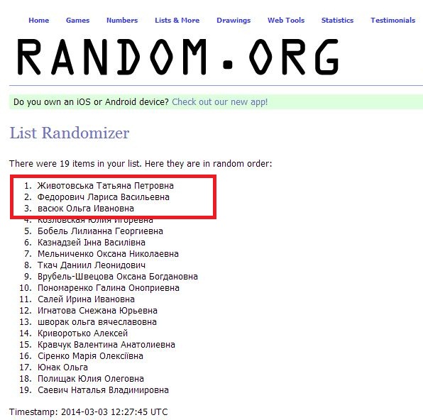 Согласно правилам конкурса, подарки разыгрываются среди участников, которые правильно ответили на все вопросы. Победителей (3) выбирает система random.org
