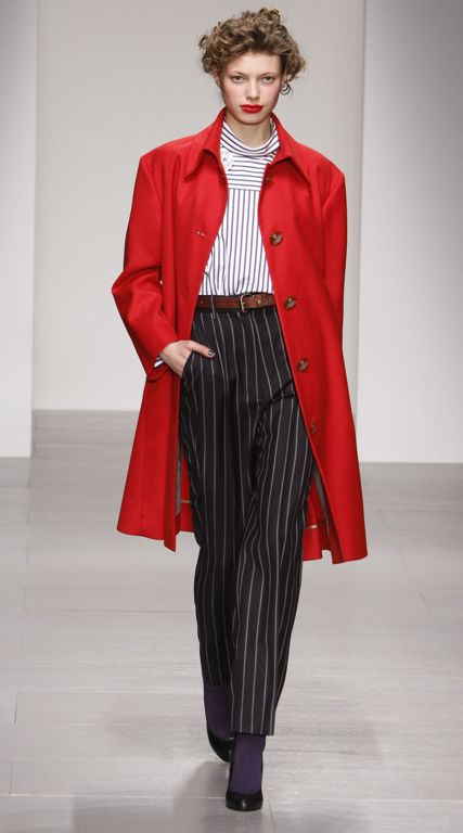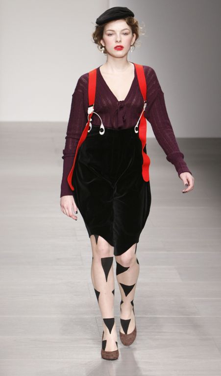 В коллекции осень-зима 2014 можно увидеть и зауженные пиджаки, и юбки на каркасах, и шляпы с узкими полями, и береты французских художников, и «клоунские» подтяжки.