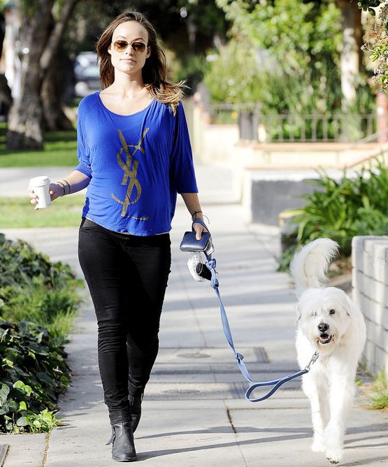 Гордая беременная Оливия Уайлд прогулялась с любимцем (фото)
