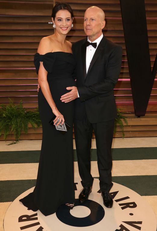 Эмми в элегантном черном платье с декольте выглядела очаровательно. И улыбающийся Брюс периодически поглаживал животик супруги, не смущаясь фотокамер.