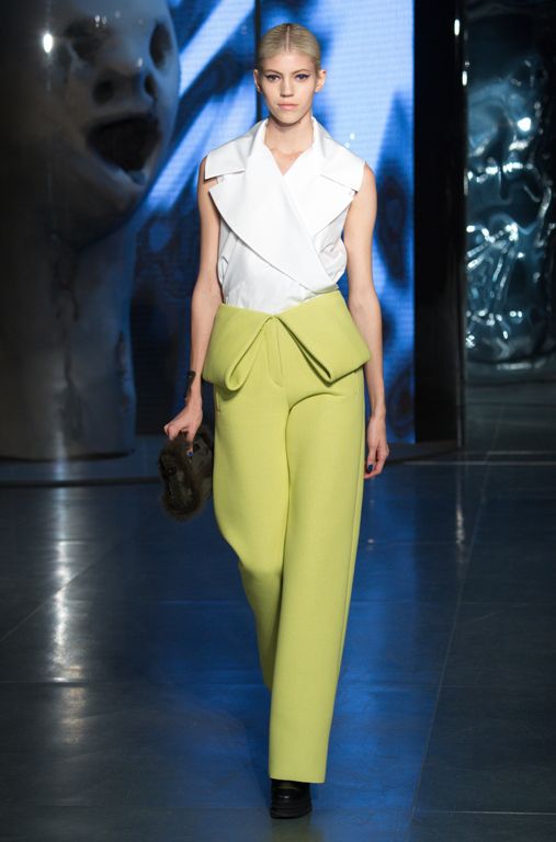 Осенне-зимняя палитра не традиционная – самые главные цвета: ярко-желтый, лаймовый, красный, зеленый, оранжевый. Самые главные тенденции показа: