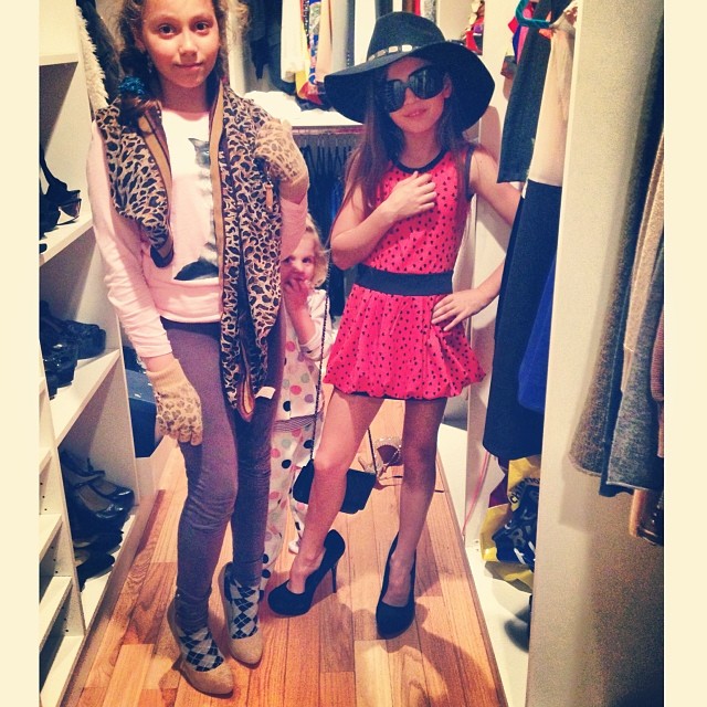 Юные модницы покопались в мамином шкафу и примерили на себя несколько стильных образов. Девочки с радостью позировали перед камерой в модных одежках и туфельках на высоких шпильках.