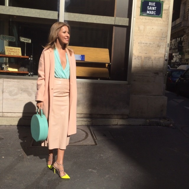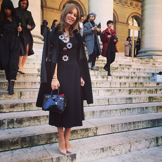 Популярная телеведущая и журналистка Ксения Собчак посетила Неделю моды в Париже. Как и полагается, на показы девушка принаряжалась по последнему писку моды.