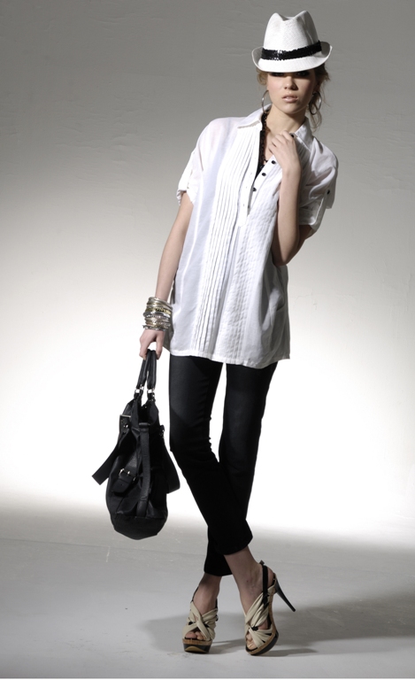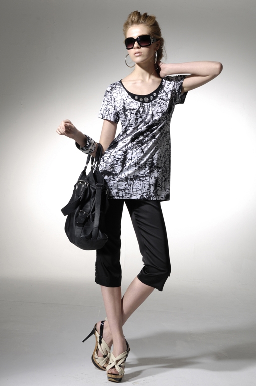 Один из трендов весенней моды 2014 – сочетание черного и белого. К укороченным брюкам подбери черно-белую трикотажную блузку с коротким рукавом – динамично и элегантно.