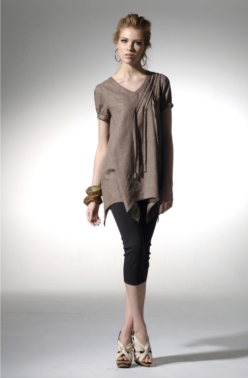 Симпатичный вариант – хлопчатобумажная или льняная туника пастельного цвета. Дополнить образ можно массивными браслетами в тон к тунике.